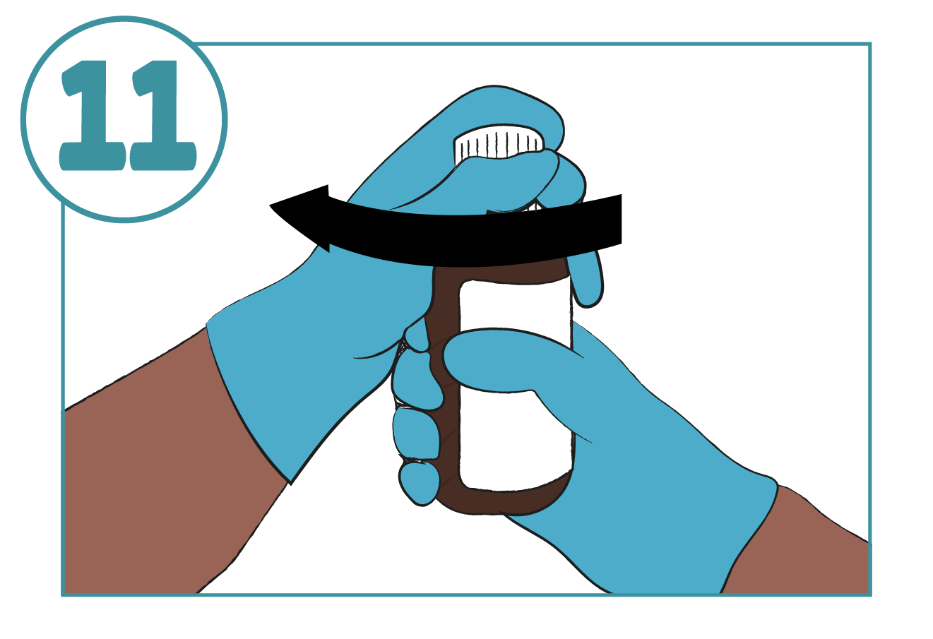 Put the cap back on the bottle with the adaptor left in place. Ensure that the cap is tightly closed