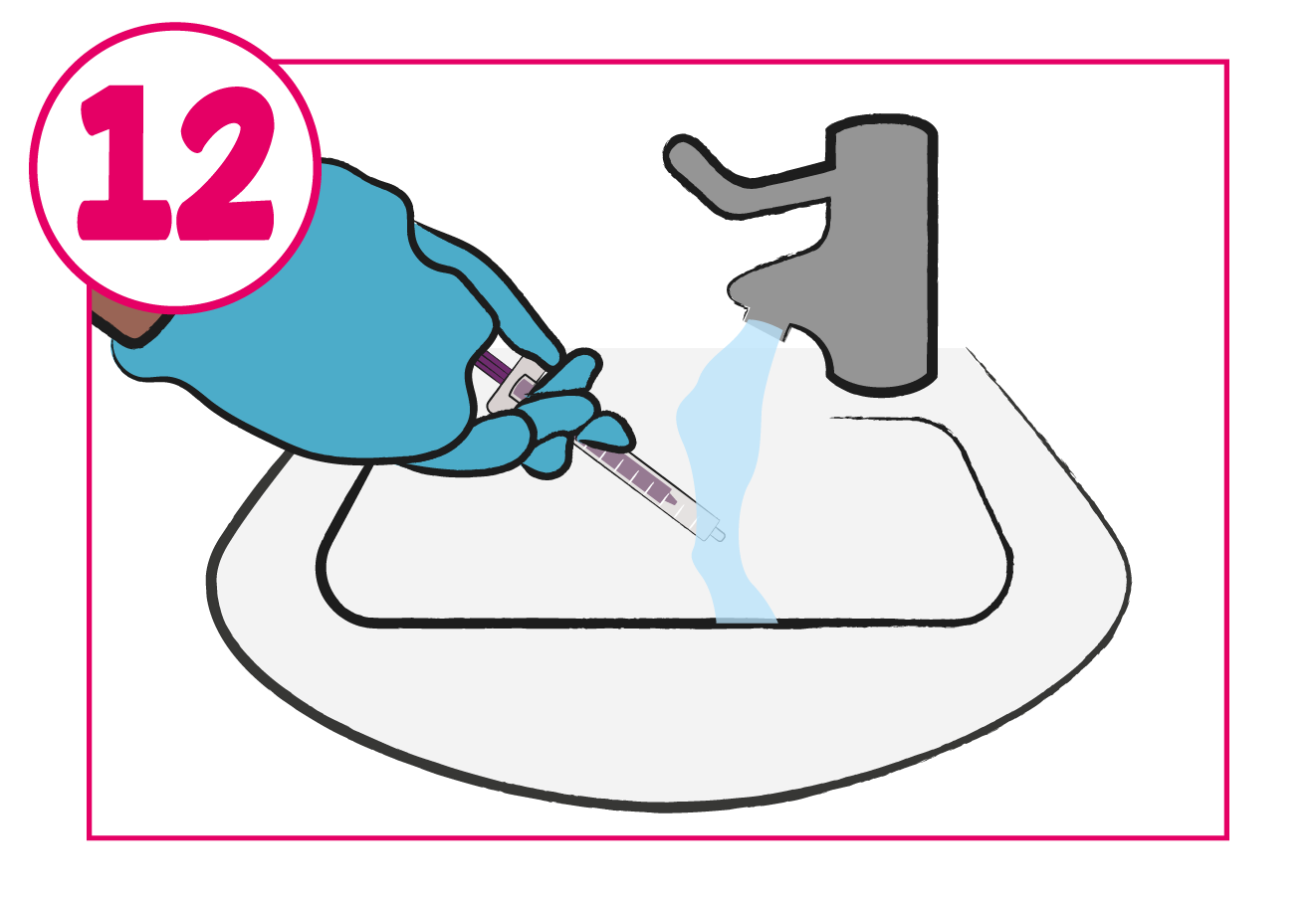 Wash the syringe with warm water and rinse well. Hold the syringe under water and move the plunger up and down several times to make sure the inside of the syringe is clean