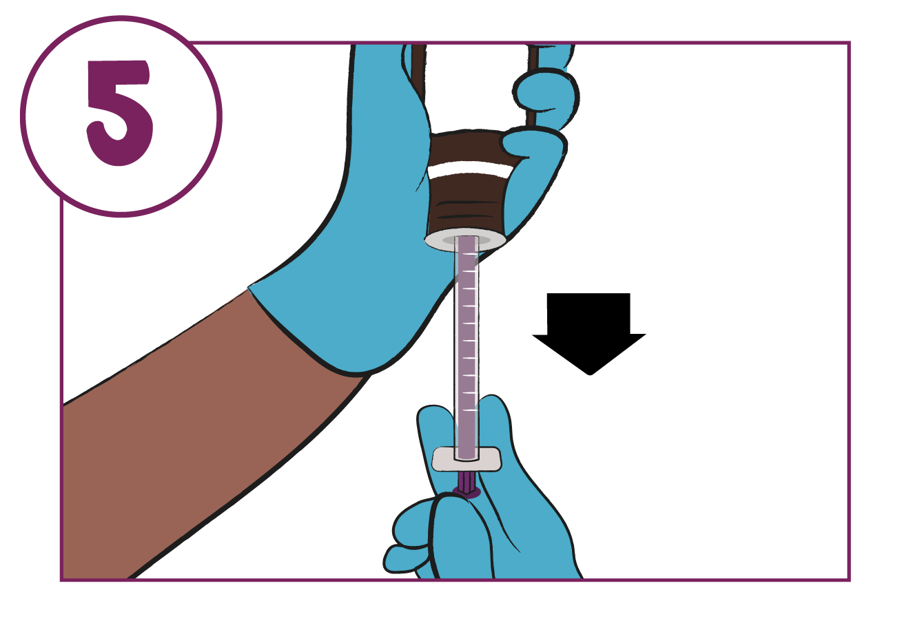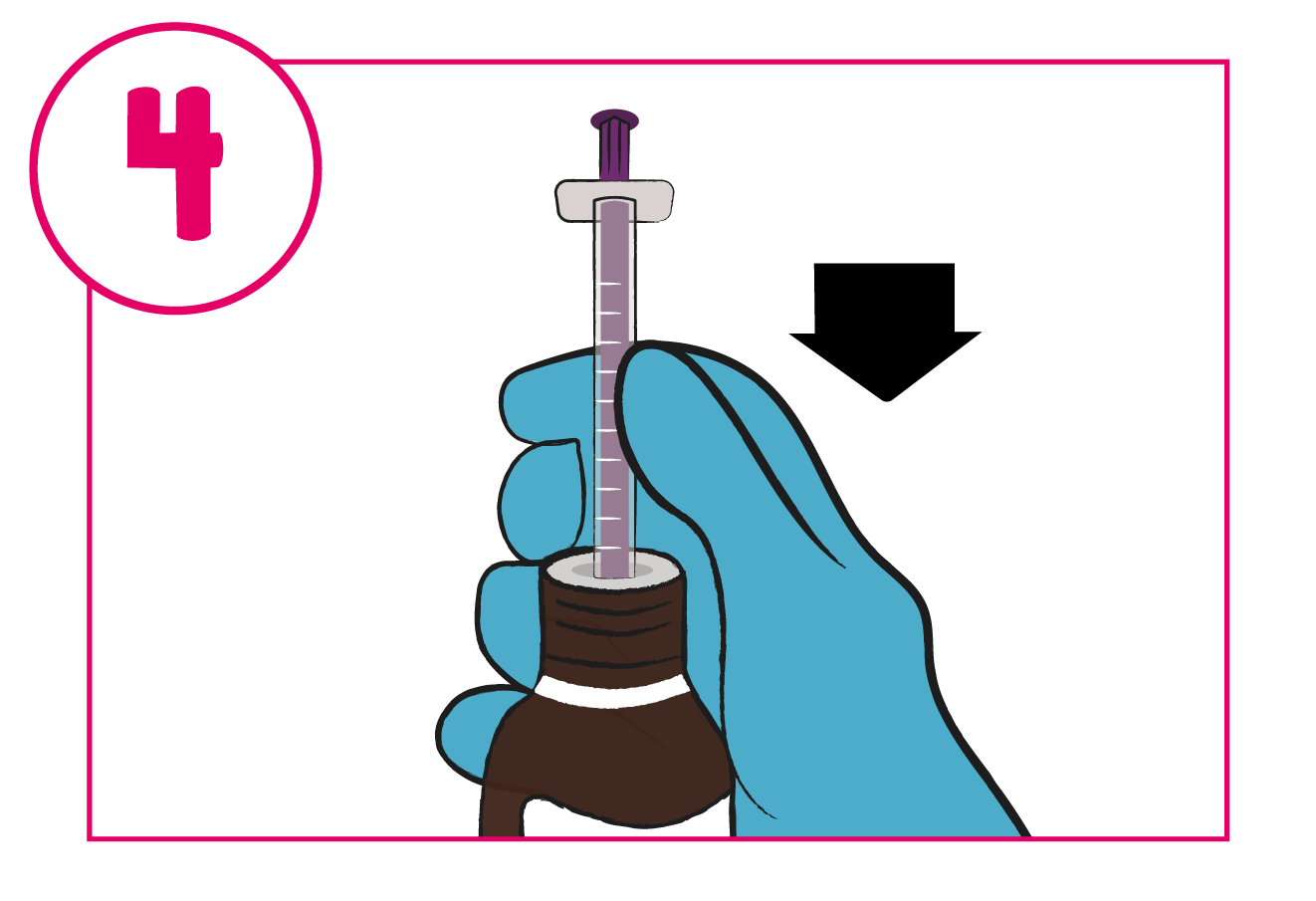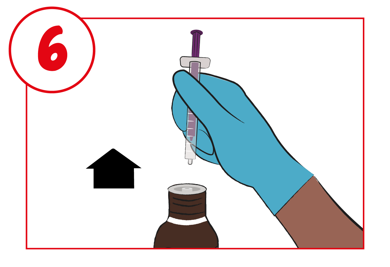 Turn the bottle upside down. Pull the plunger of the syringe back to the point on the scale that corresponds to the dose prescribed