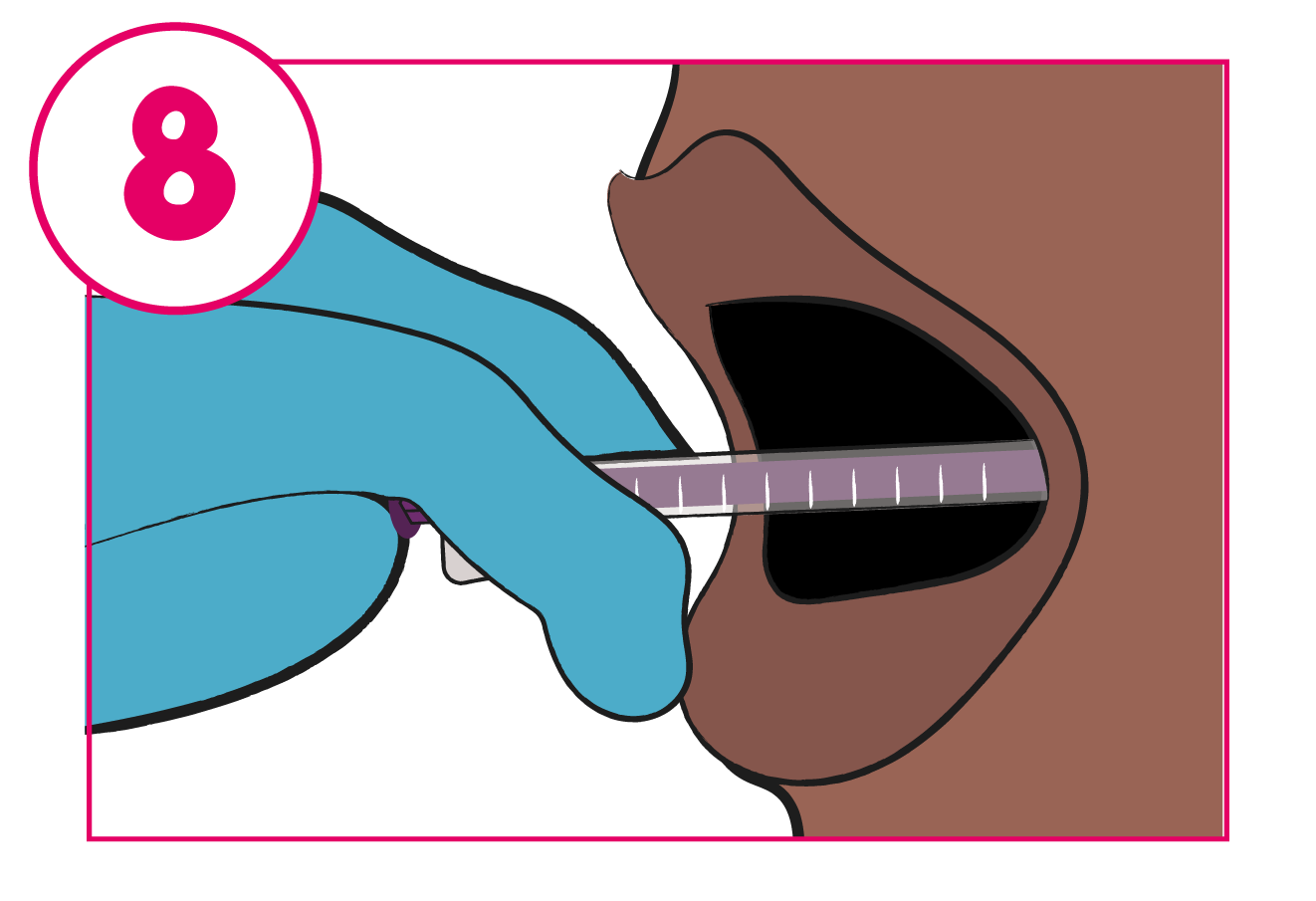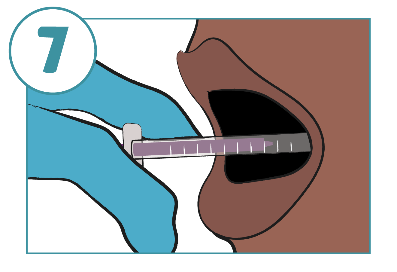 Gently put the tip of the syringe into your mouth and to the inside of your cheek